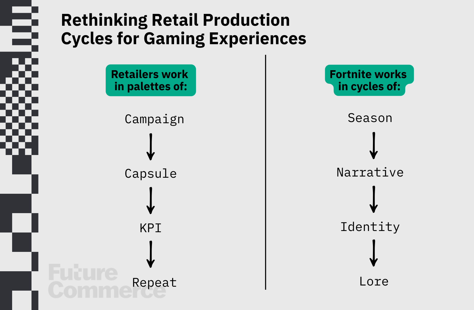 Retailers should treat Fortnite as a persistent brand world that can be extended, iterated on, and woven into a broader consumer journey. Stop trying to "activate" in Fortnite. Start thinking: What would it look like to exist there?