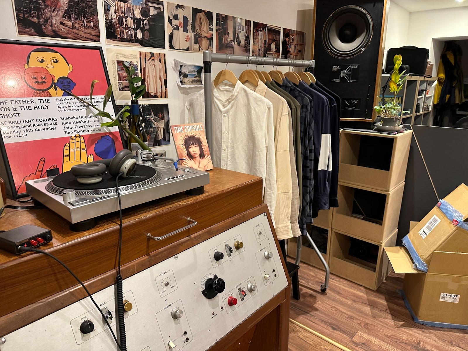 During my visit, I spoke with a co-owner, Tom, who emphasised that the store was deliberately designed for dwell time: "We wanted people to linger, pick up a record, plug in the headphones, maybe grab a coffee, chat." The vibe is casual but intimate. Baskets of new releases, vintage hi-fi gear warming the space, a bookshelf of music critiques beside the records, and some T-shirts and alcohol merch on sale. The effect is less "night out" and more "slow night in, out of home".