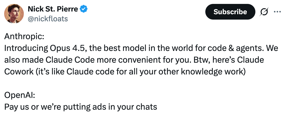 Our Take: The funniest take of the day came from Nick St. Pierre on X. But the reality is this is an arbitrage opportunity in both paid and organic. If you’re testing AEO and GEO, you should stop testing and jump all in.